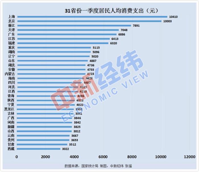 日前,国家统计局公布了31省份一季度人均消费支出,哪个省份最能“买买买”?又有哪些新的消费亮点?